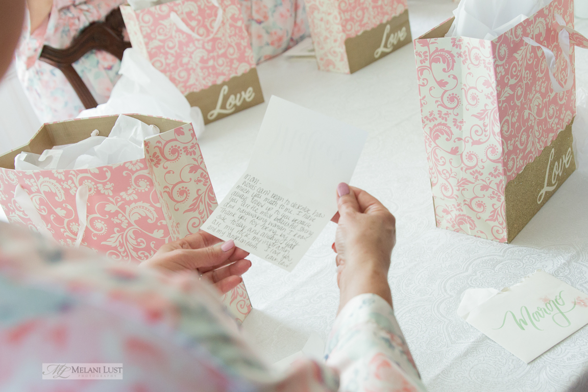 The best gifts are those that hold a personal touch for the recipient. We love how Lauren chose a matching set of rings for her girls which she presented while they were getting ready at her wedding. They felt some serious love and made it a very emotional morning! What stood out about this gift was how Lauren presented it along with embroidered handkerchiefs and individual hand written cards. She explained what each of her ladies meant to her and thanked them for always being there!